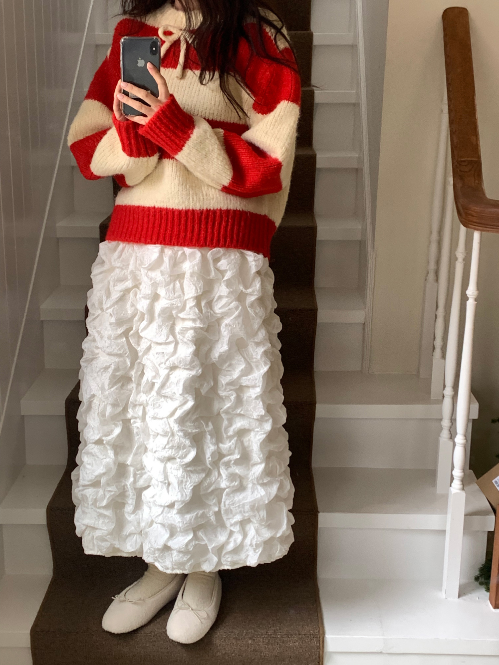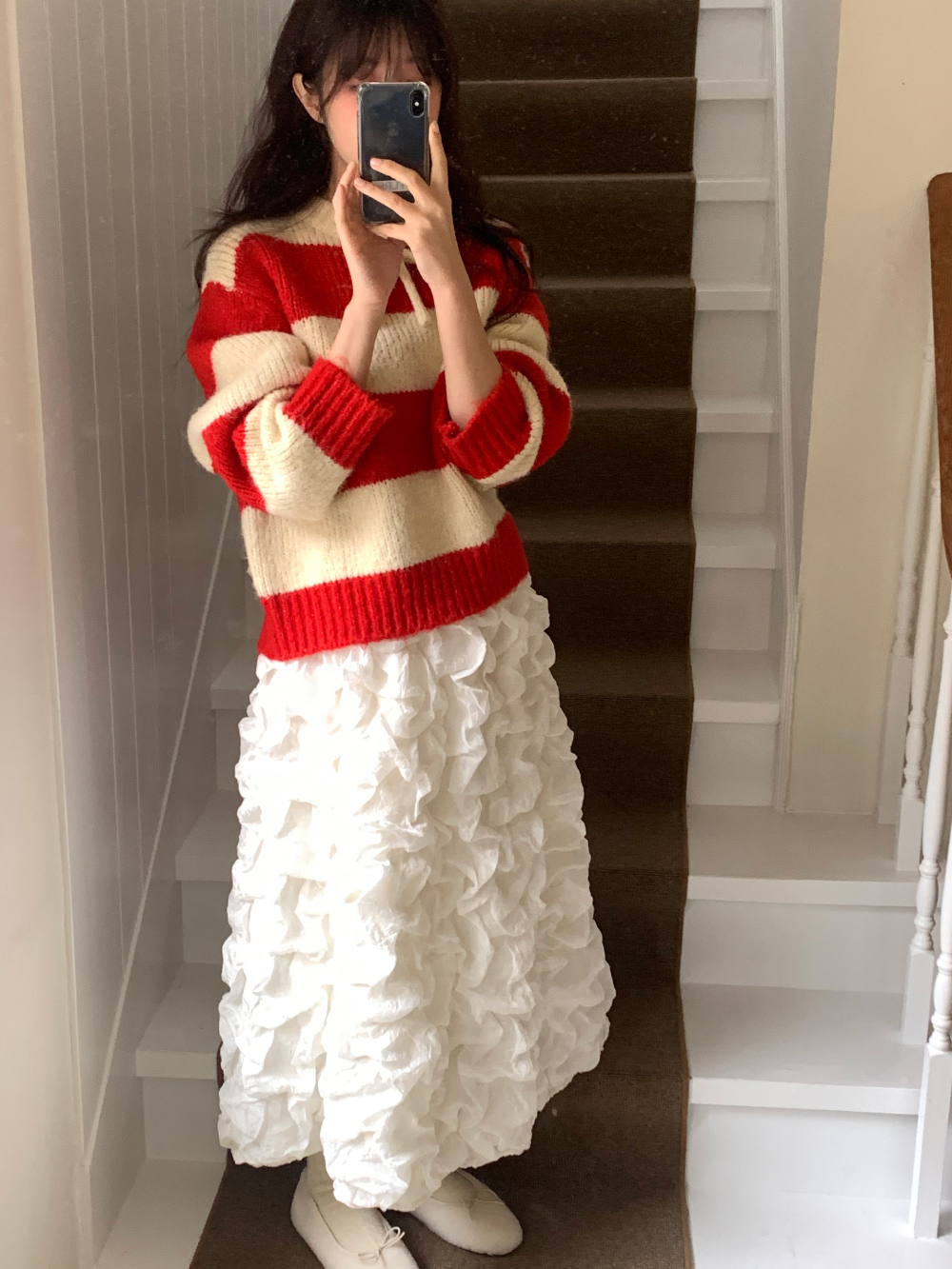 ✎真的太喜歡這一件了!自留了草莓巧克力以及紅蘋果呢!除了很保暖設計也很可愛♥︎有作收腰的設計下身搭配小裙子非常適合呢!小麵包們一定要收藏吶⋆꙳𝜗𝜚꙳.*