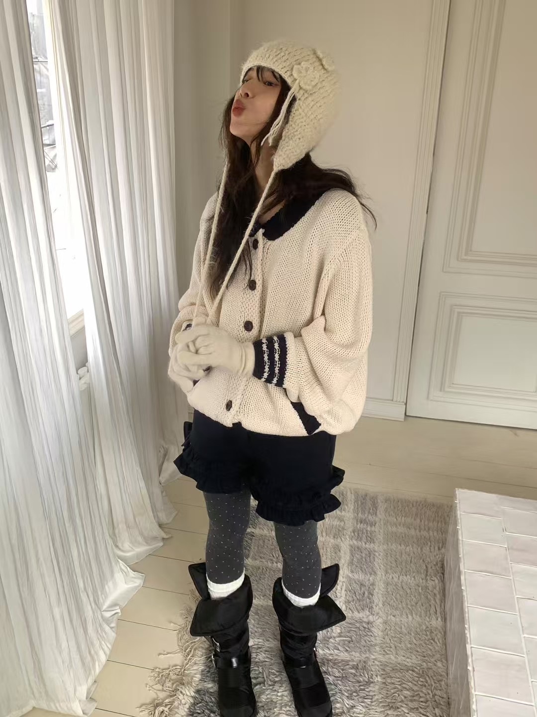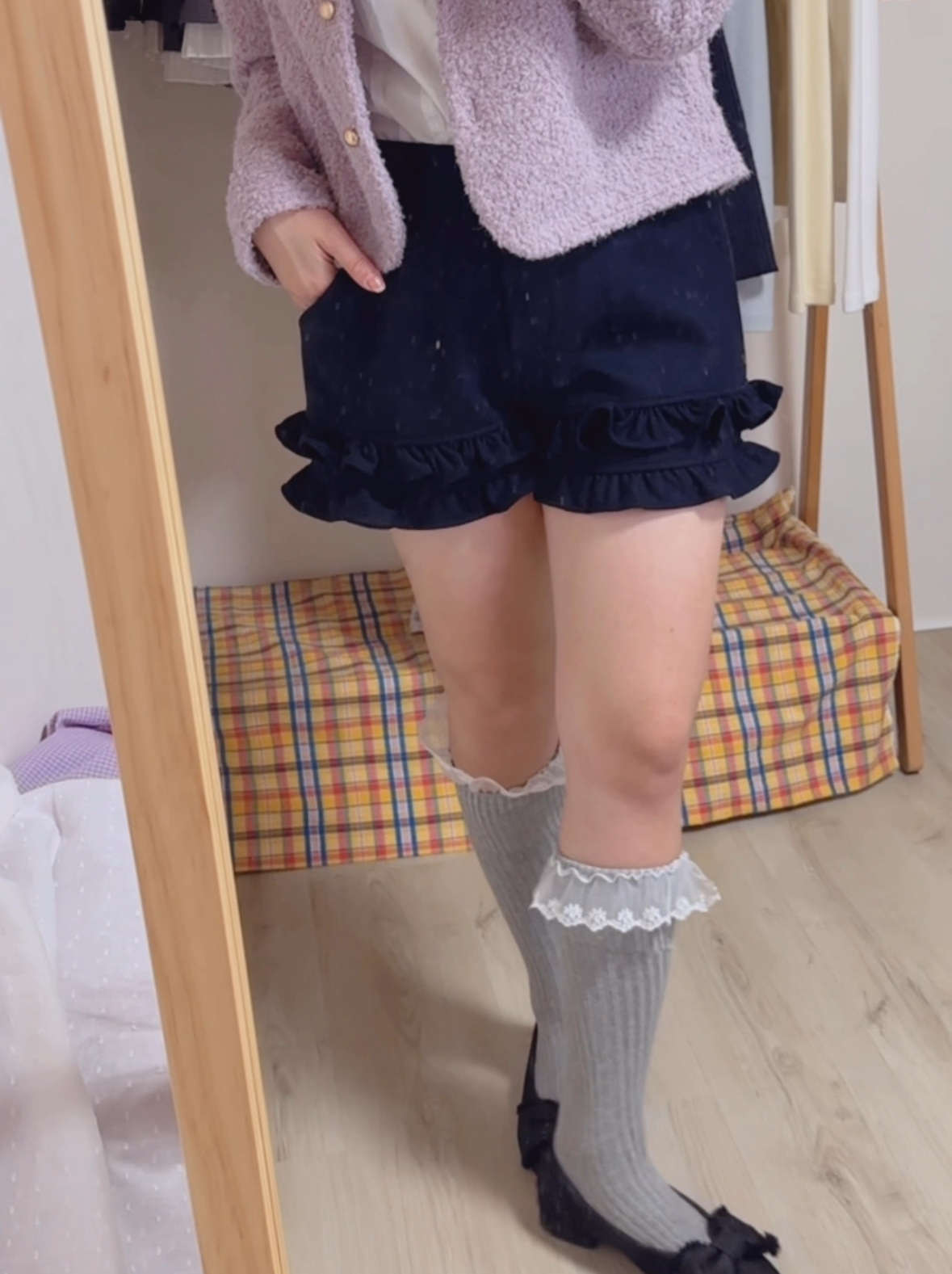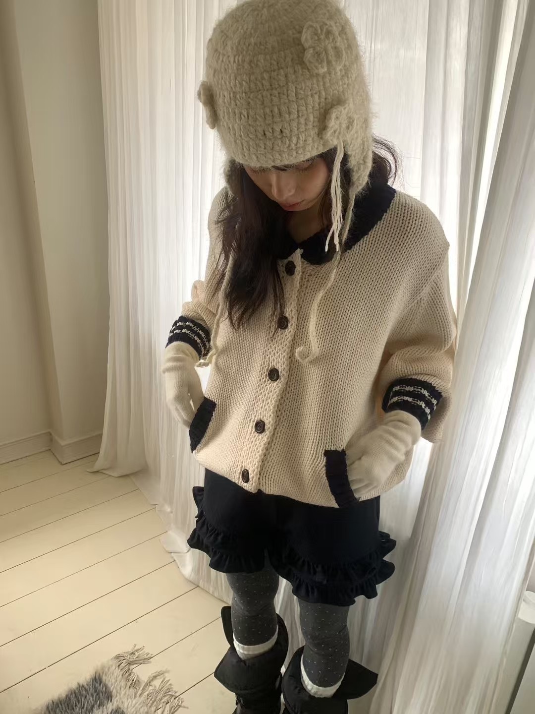 冬日50%羊毛🐑設計師小花瓣短褲(2colors)