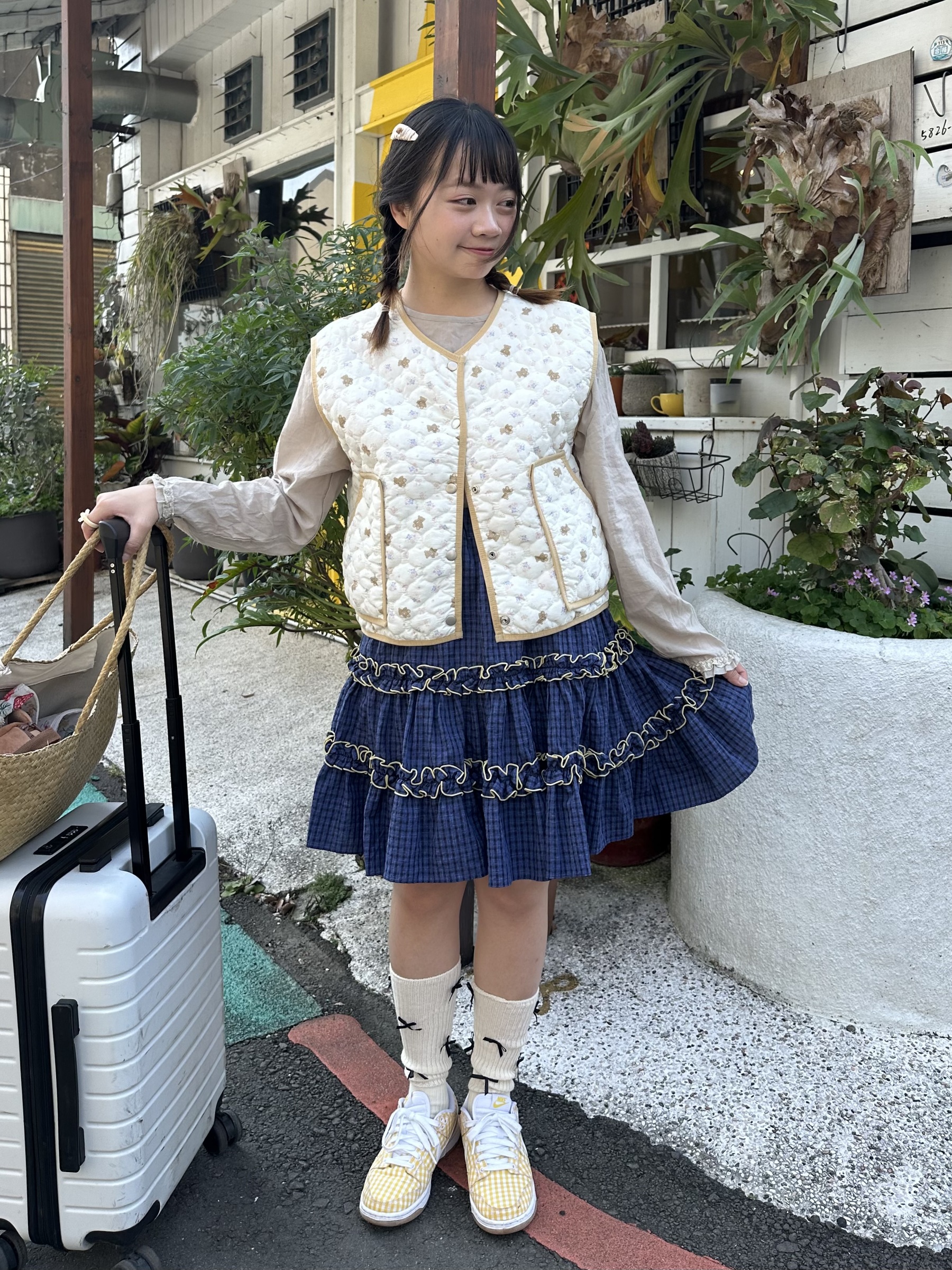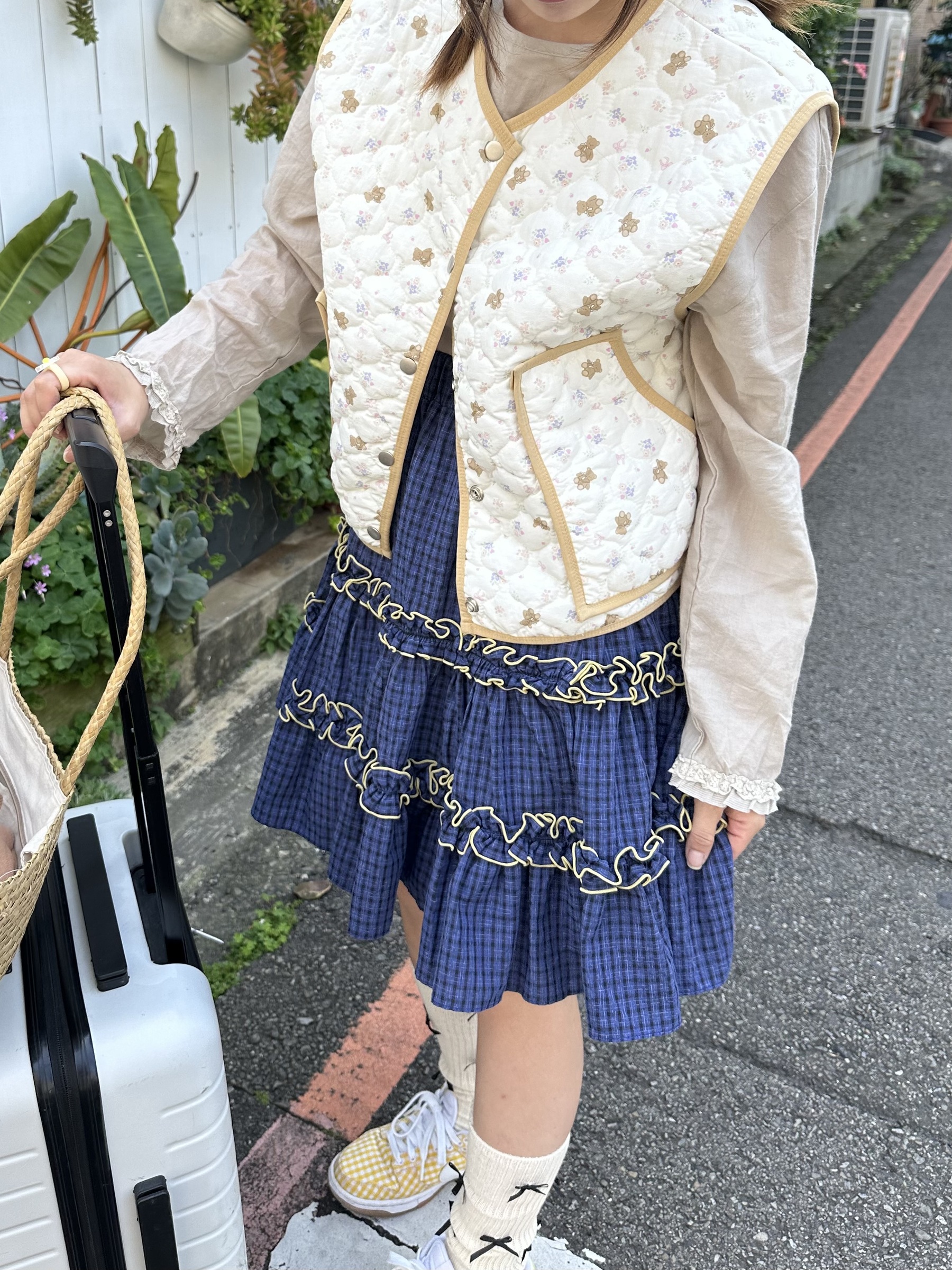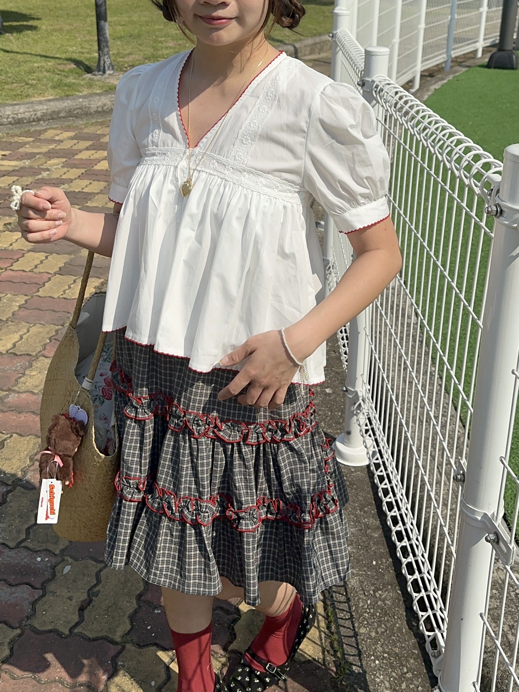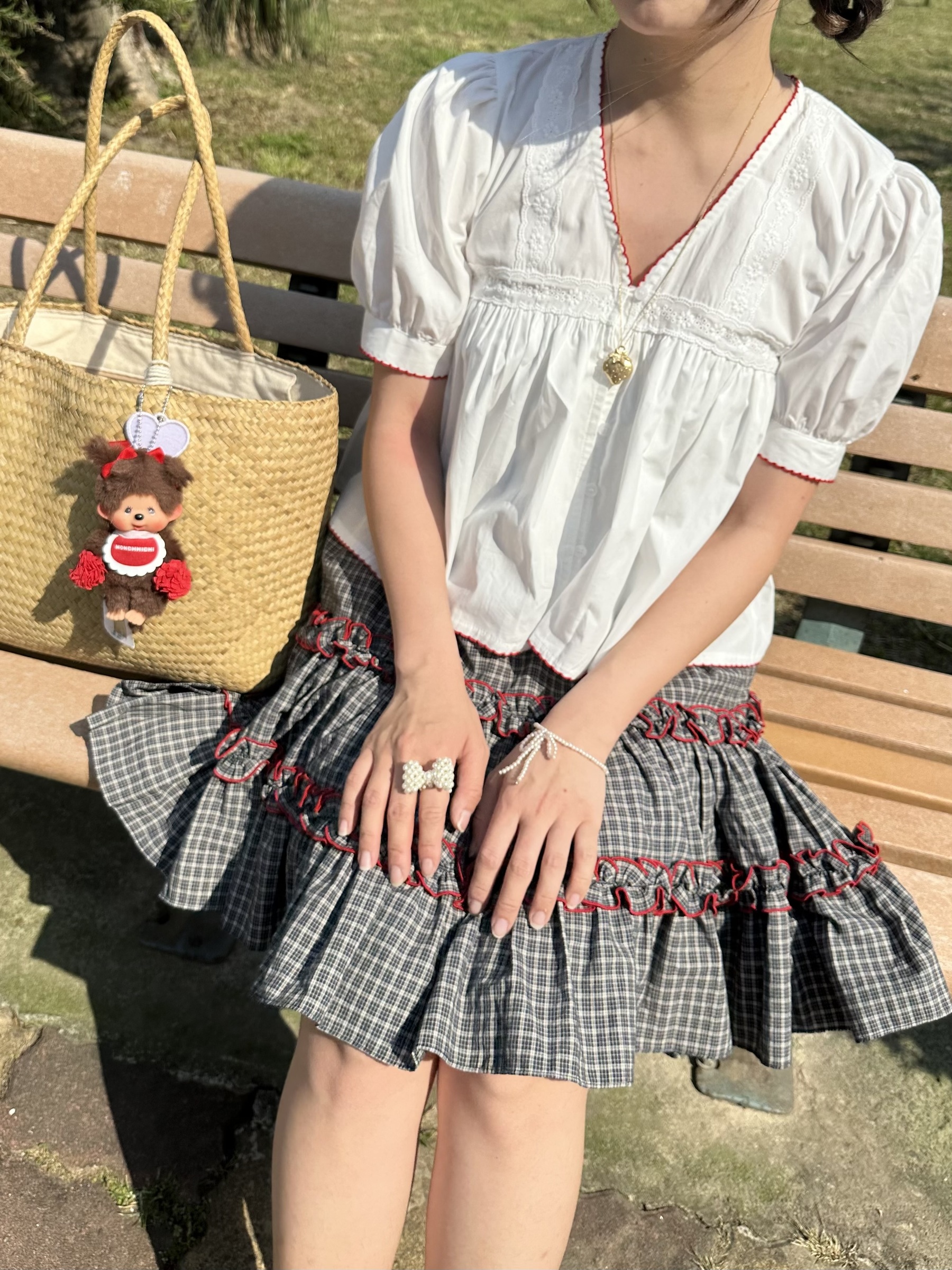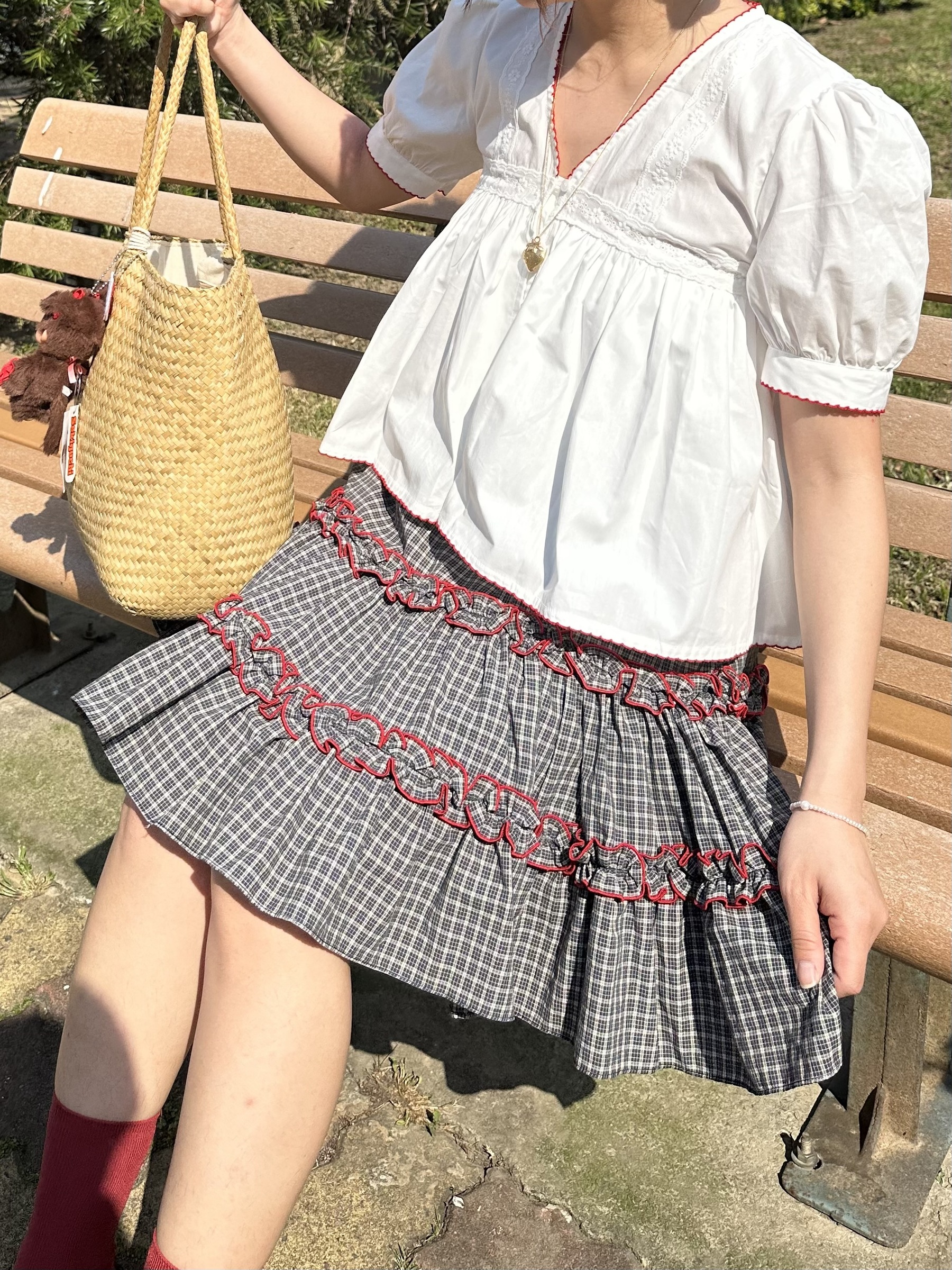 初春野餐日🧺木耳緞帶拼接格紋裙(2colors)