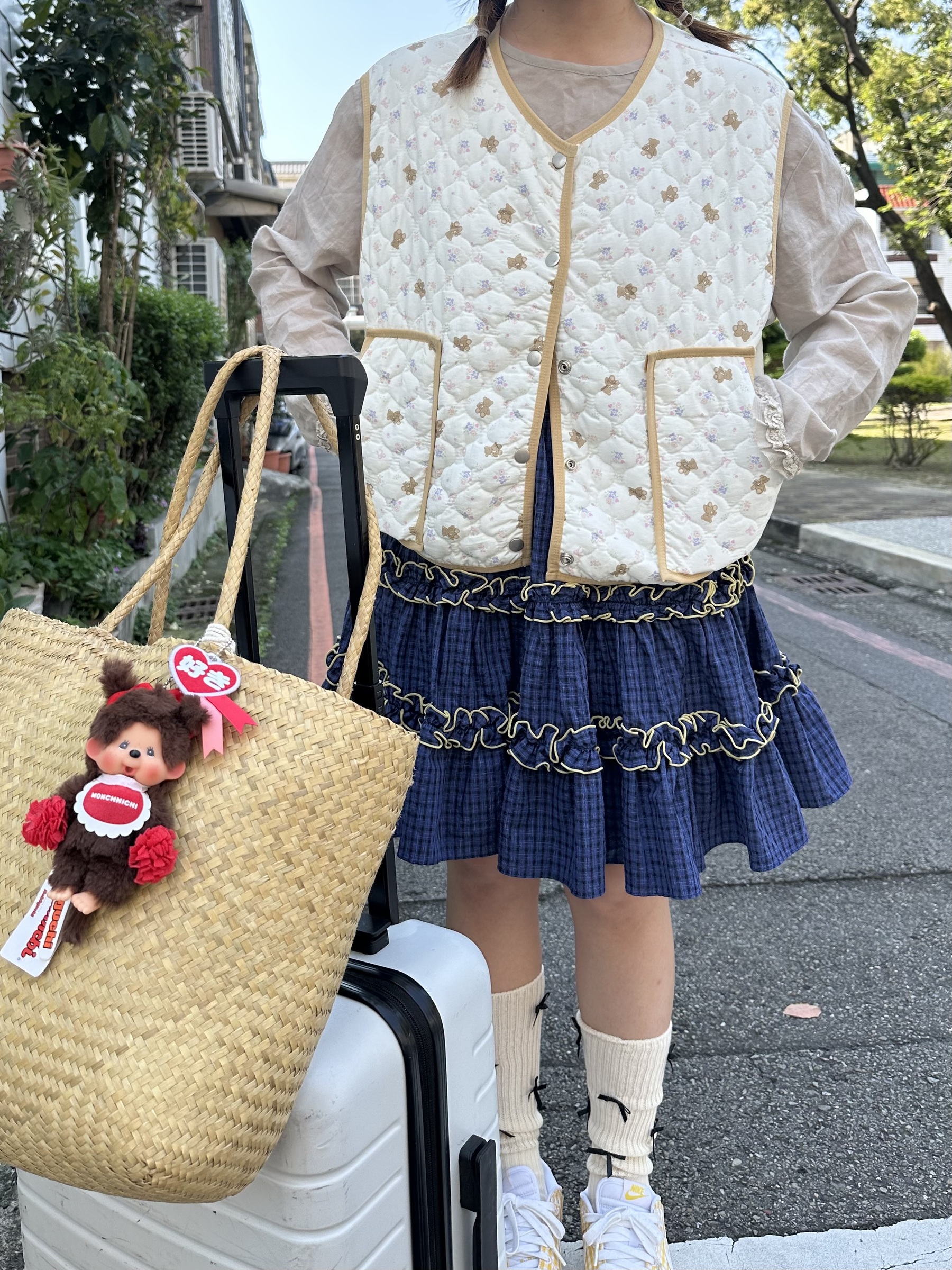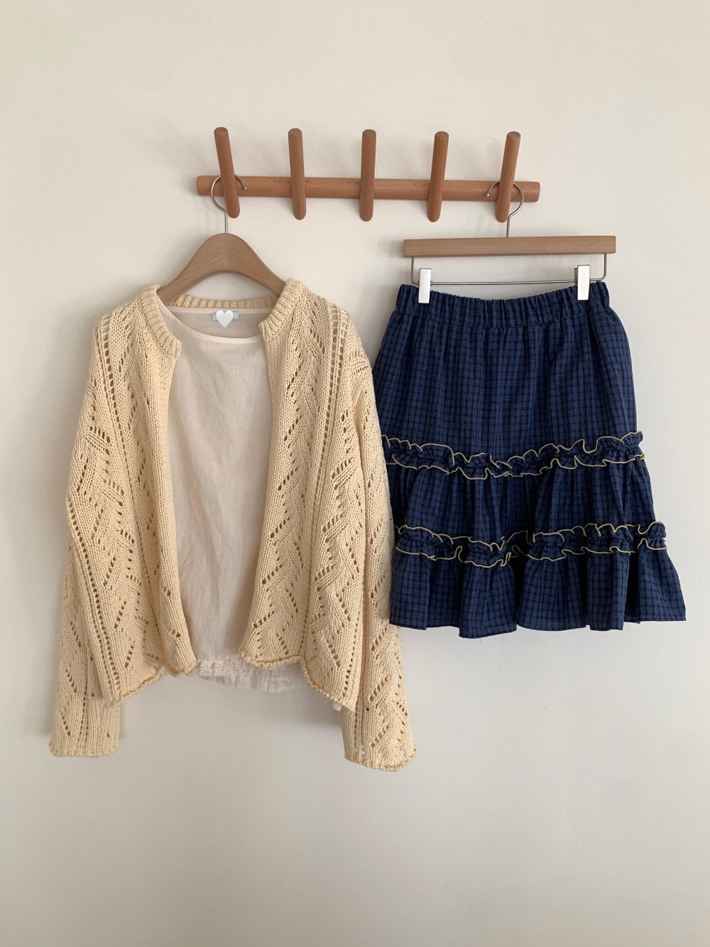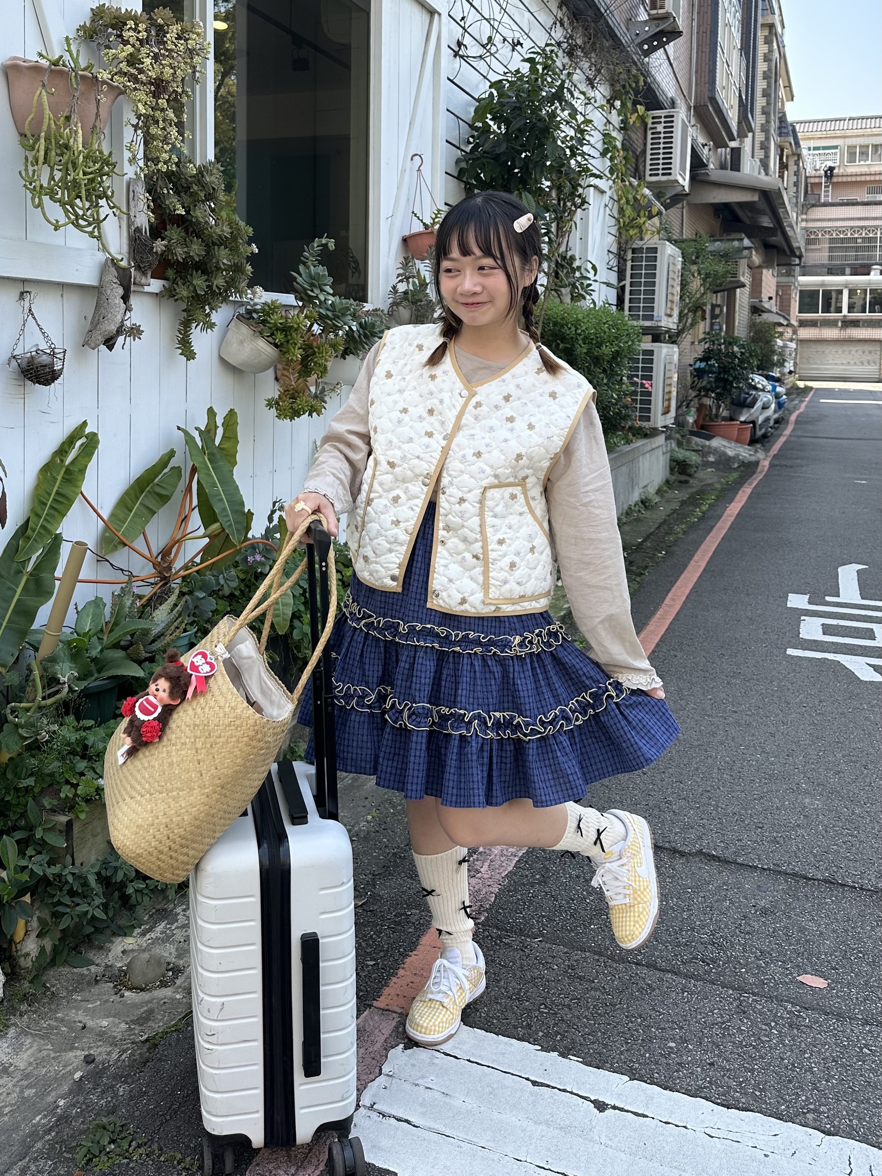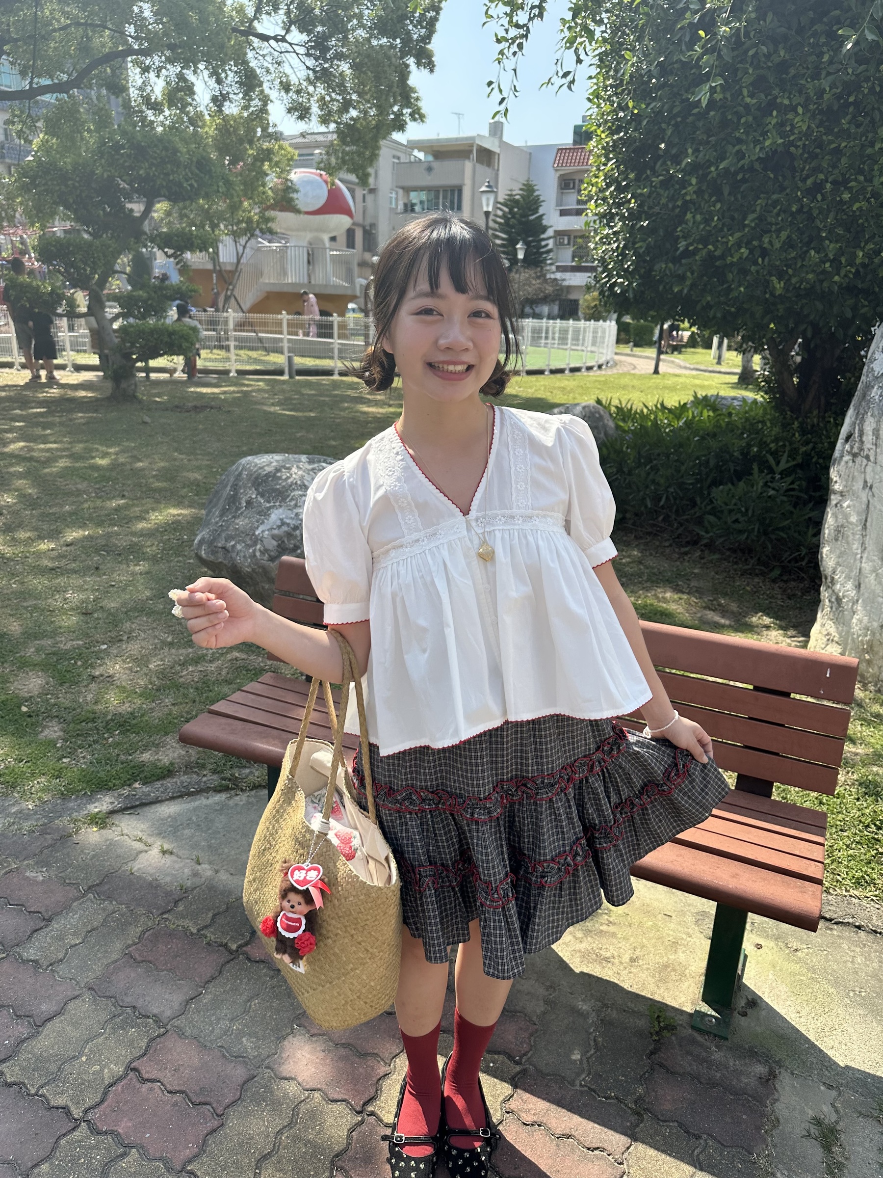 初春野餐日🧺木耳緞帶拼接格紋裙(2colors)