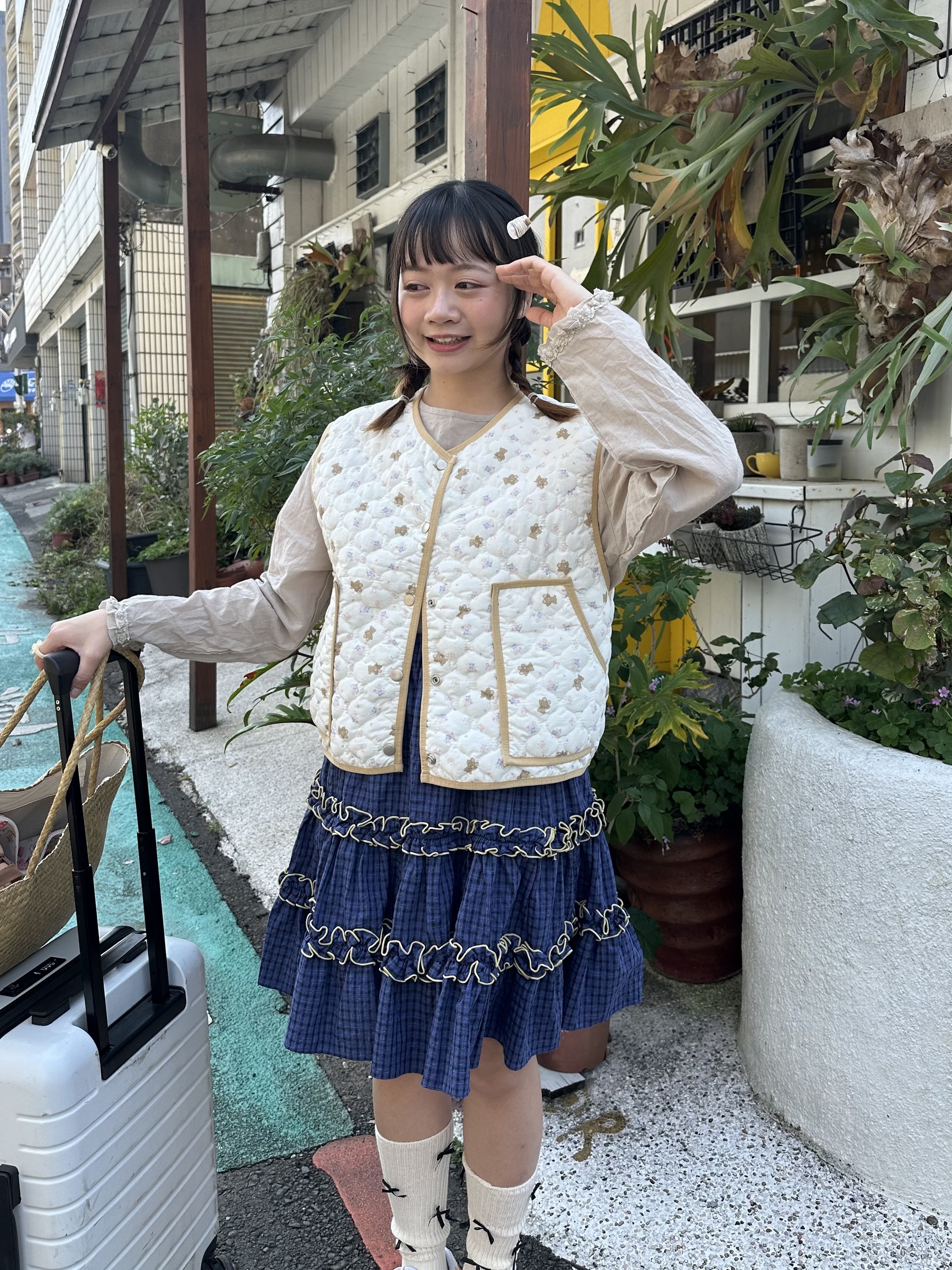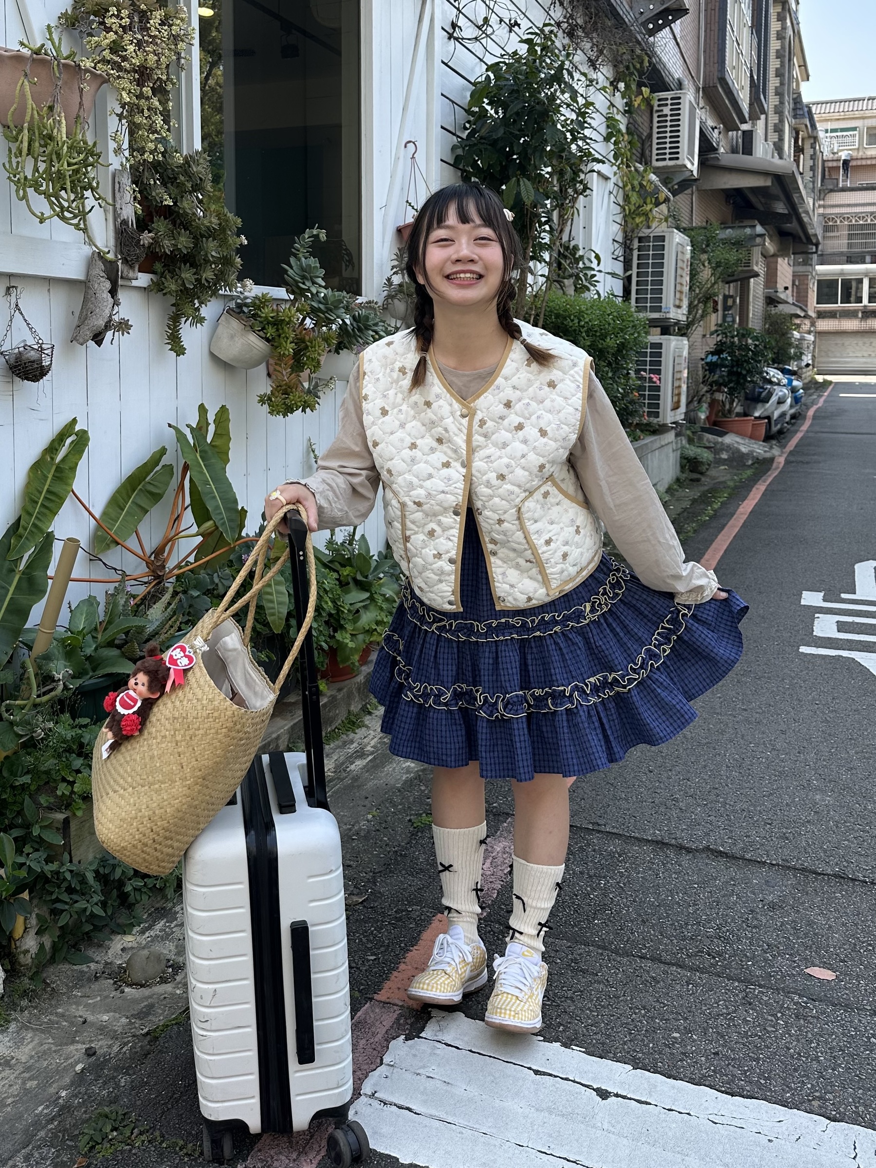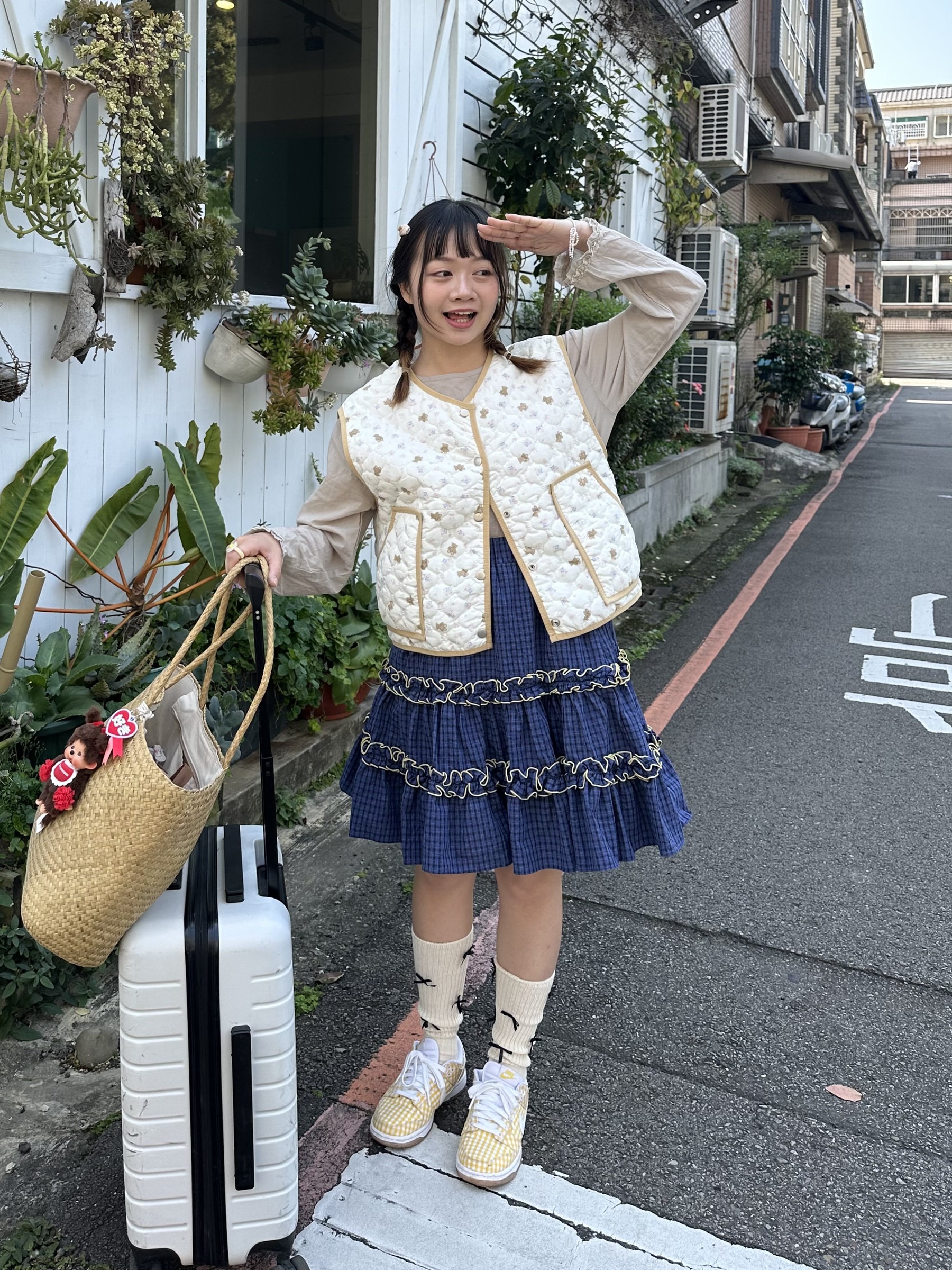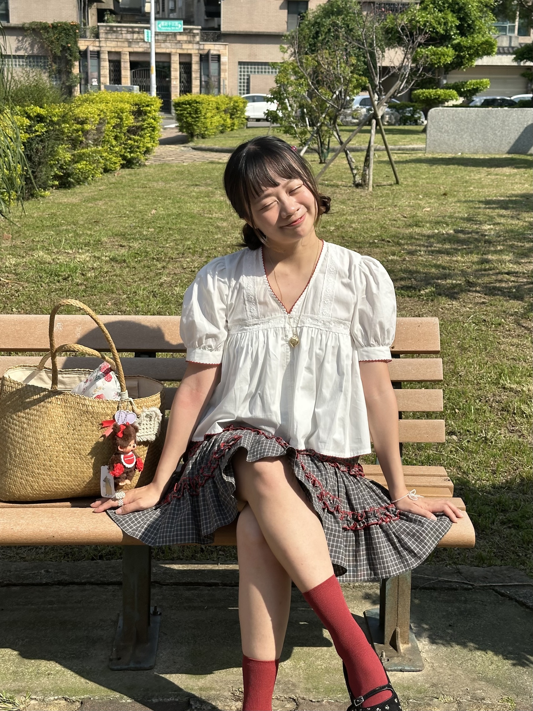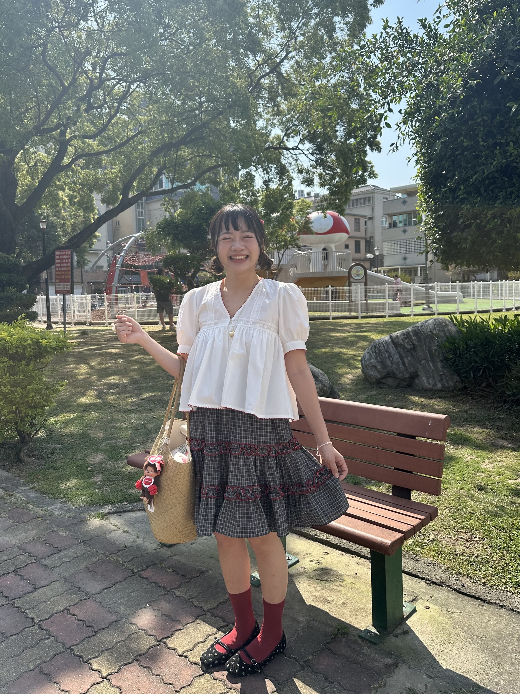 初春野餐日🧺木耳緞帶拼接格紋裙(2colors)
