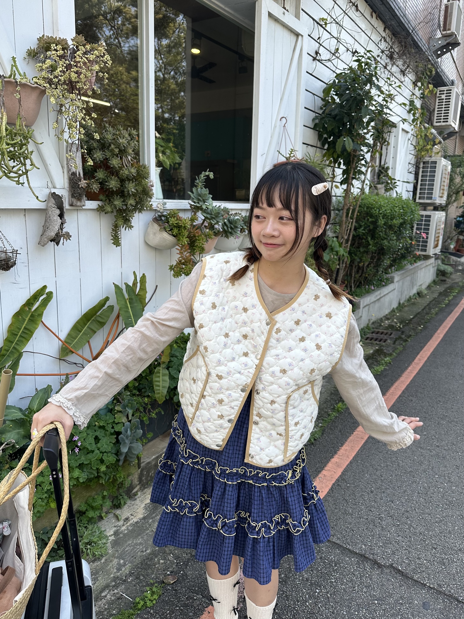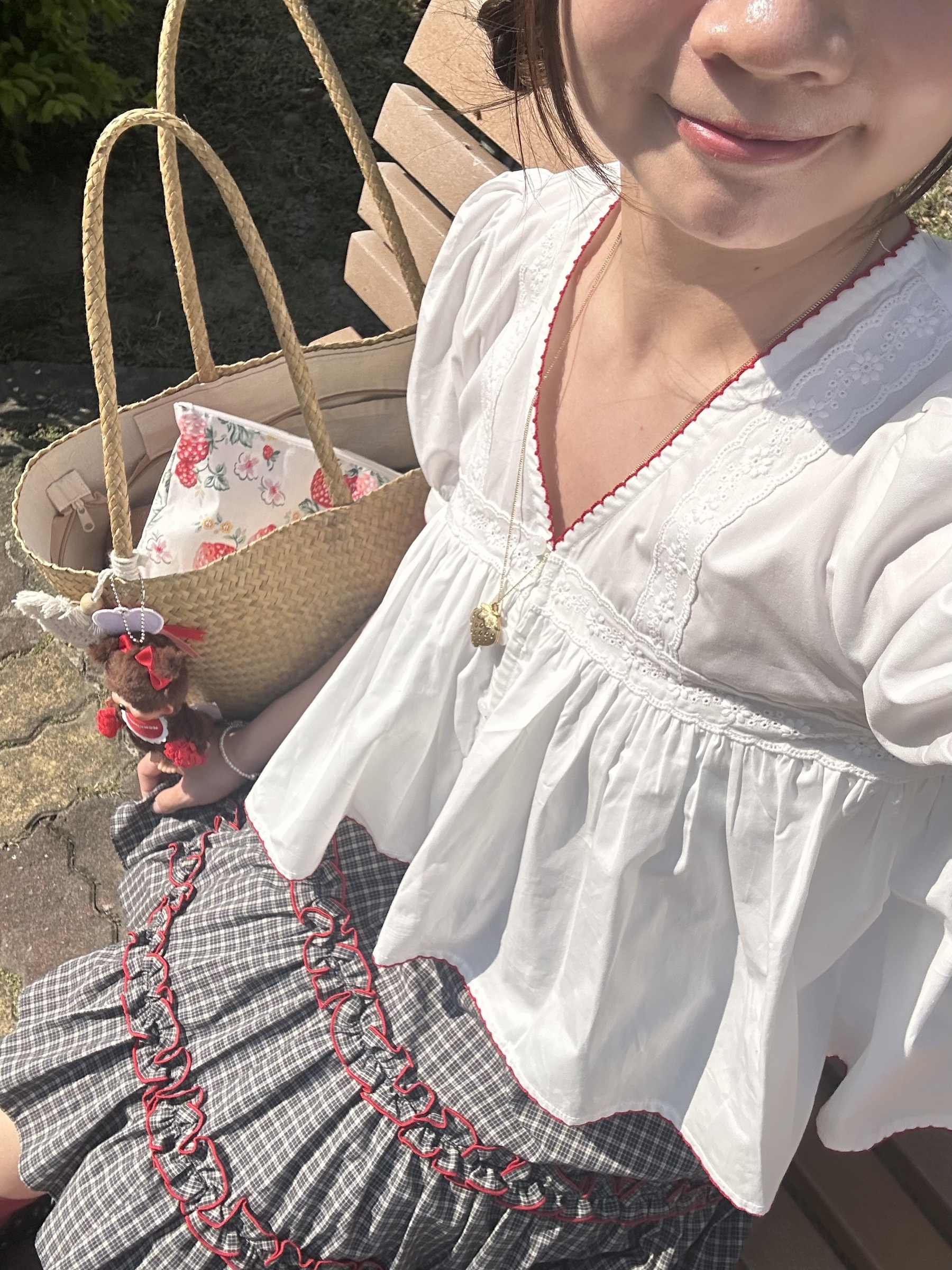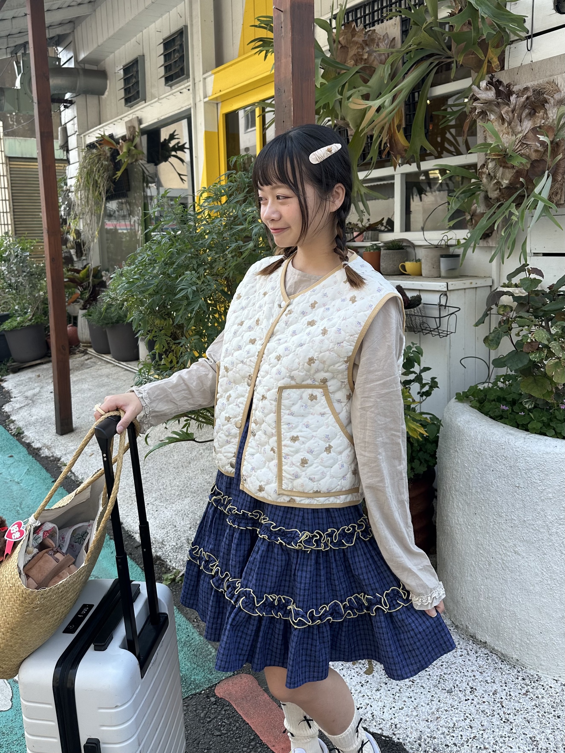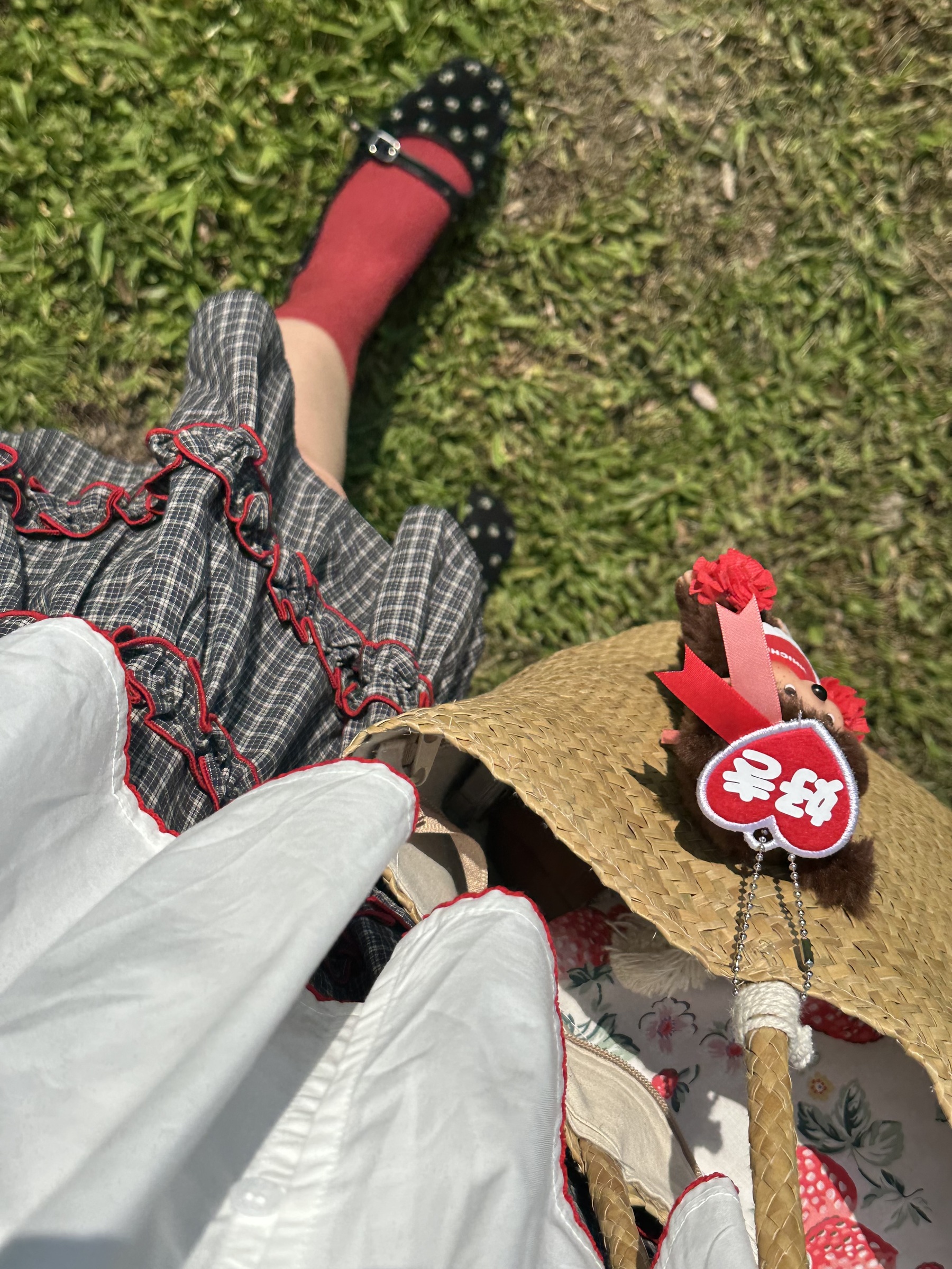 初春野餐日🧺木耳緞帶拼接格紋裙(2colors)