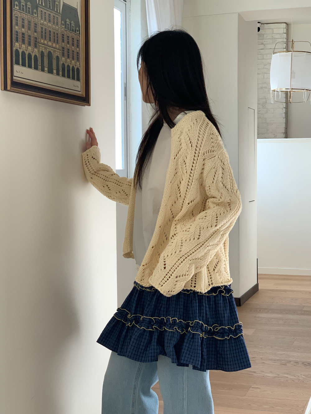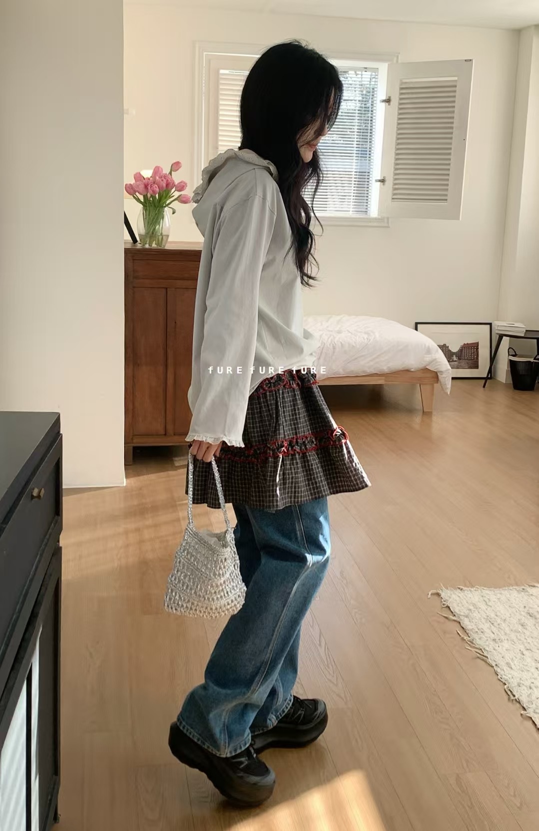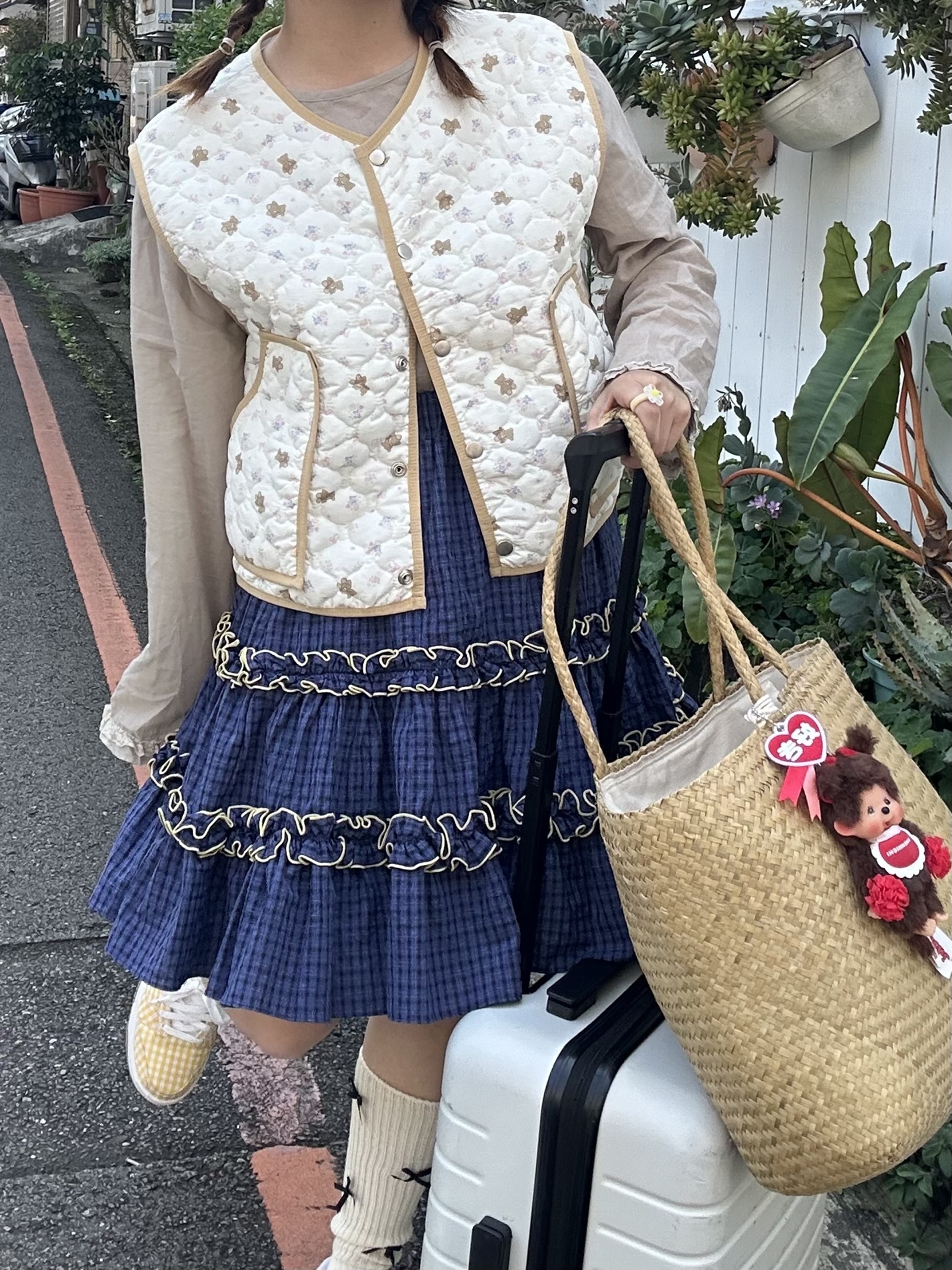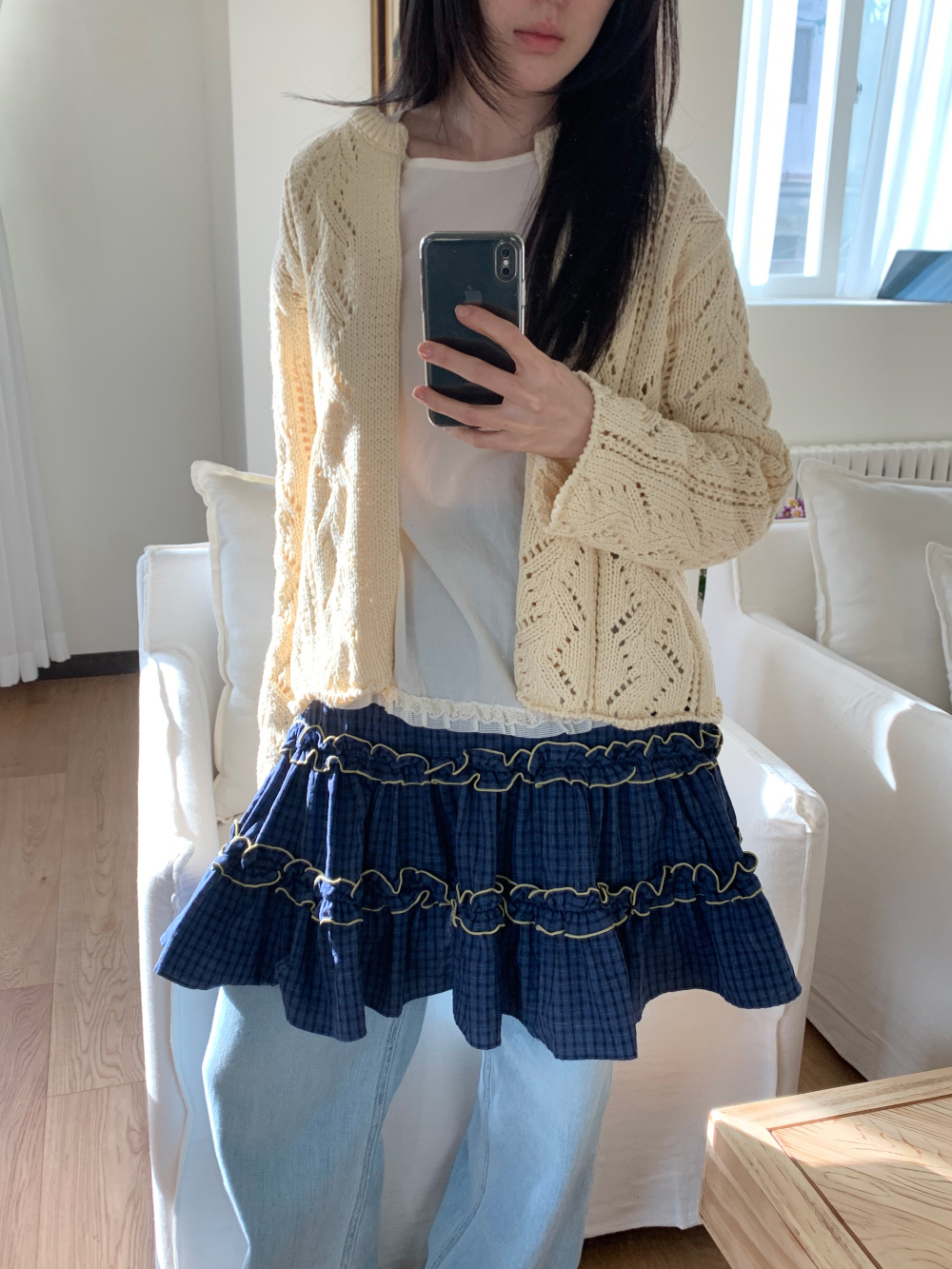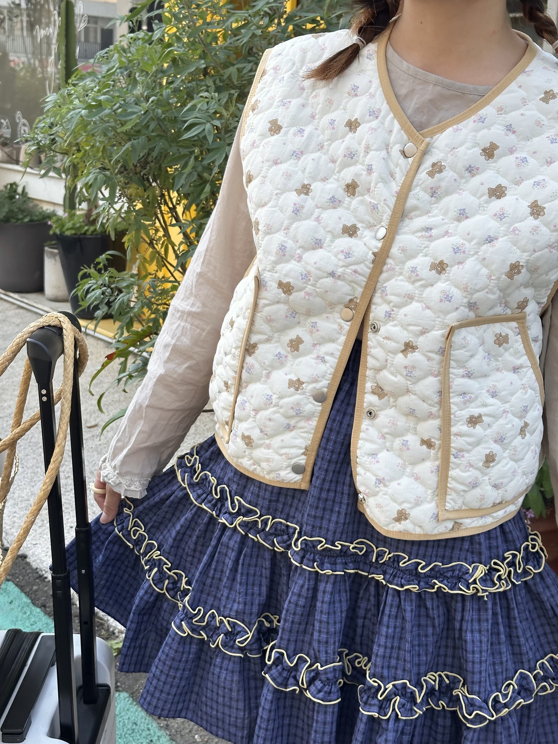 初春野餐日🧺木耳緞帶拼接格紋裙(2colors)