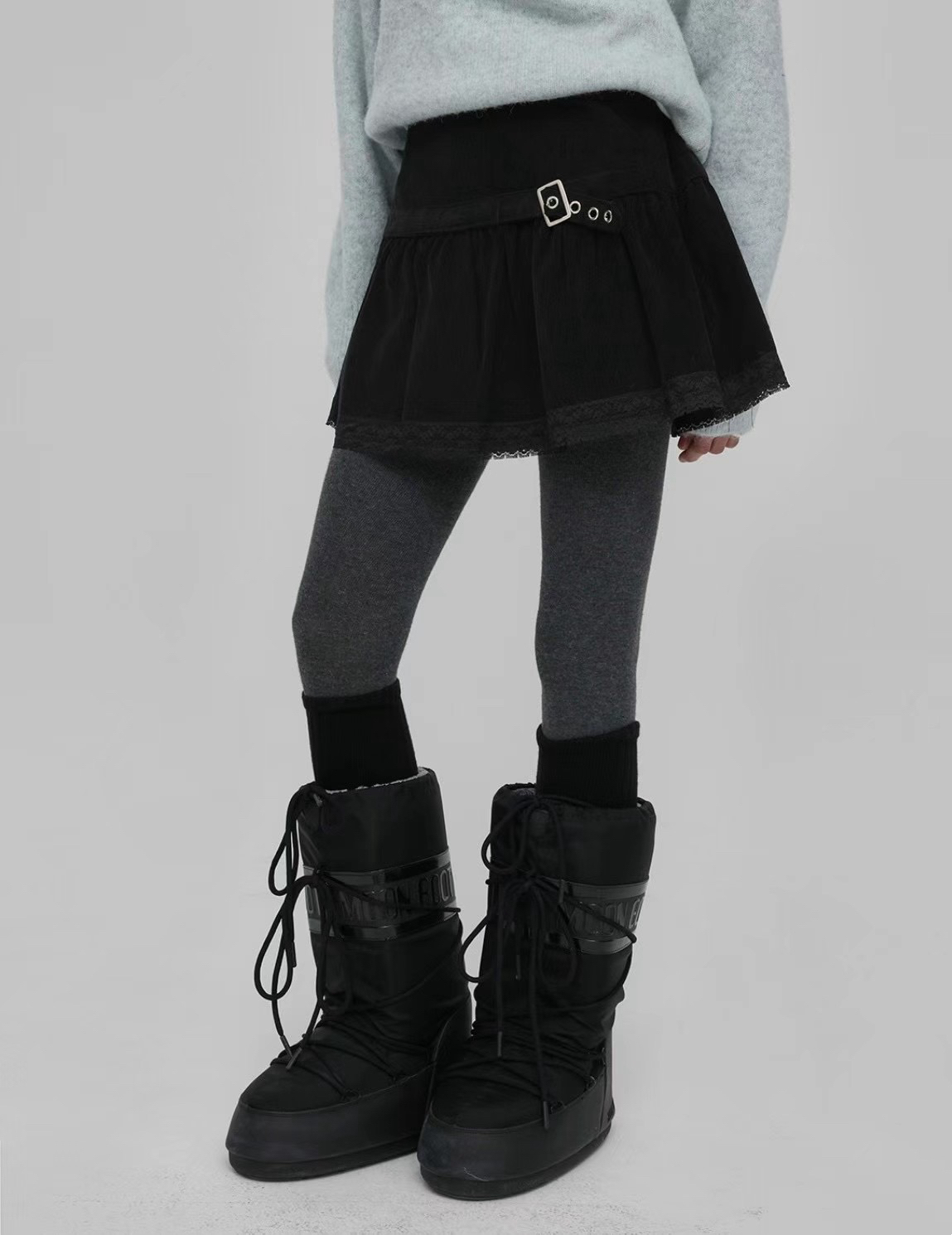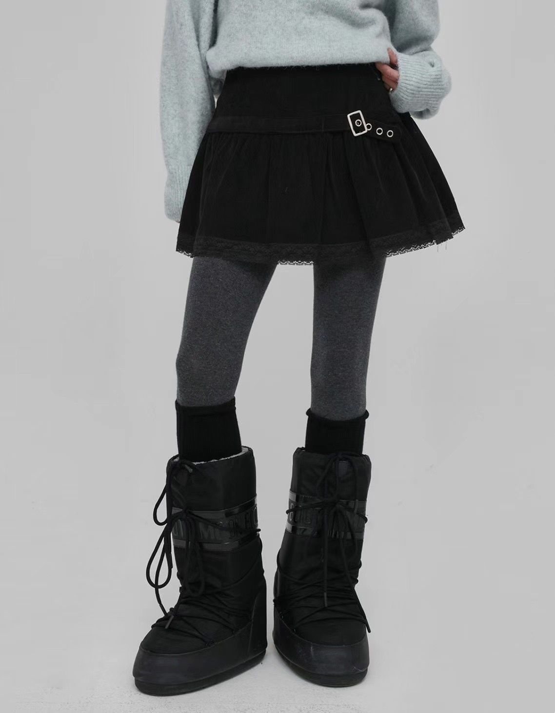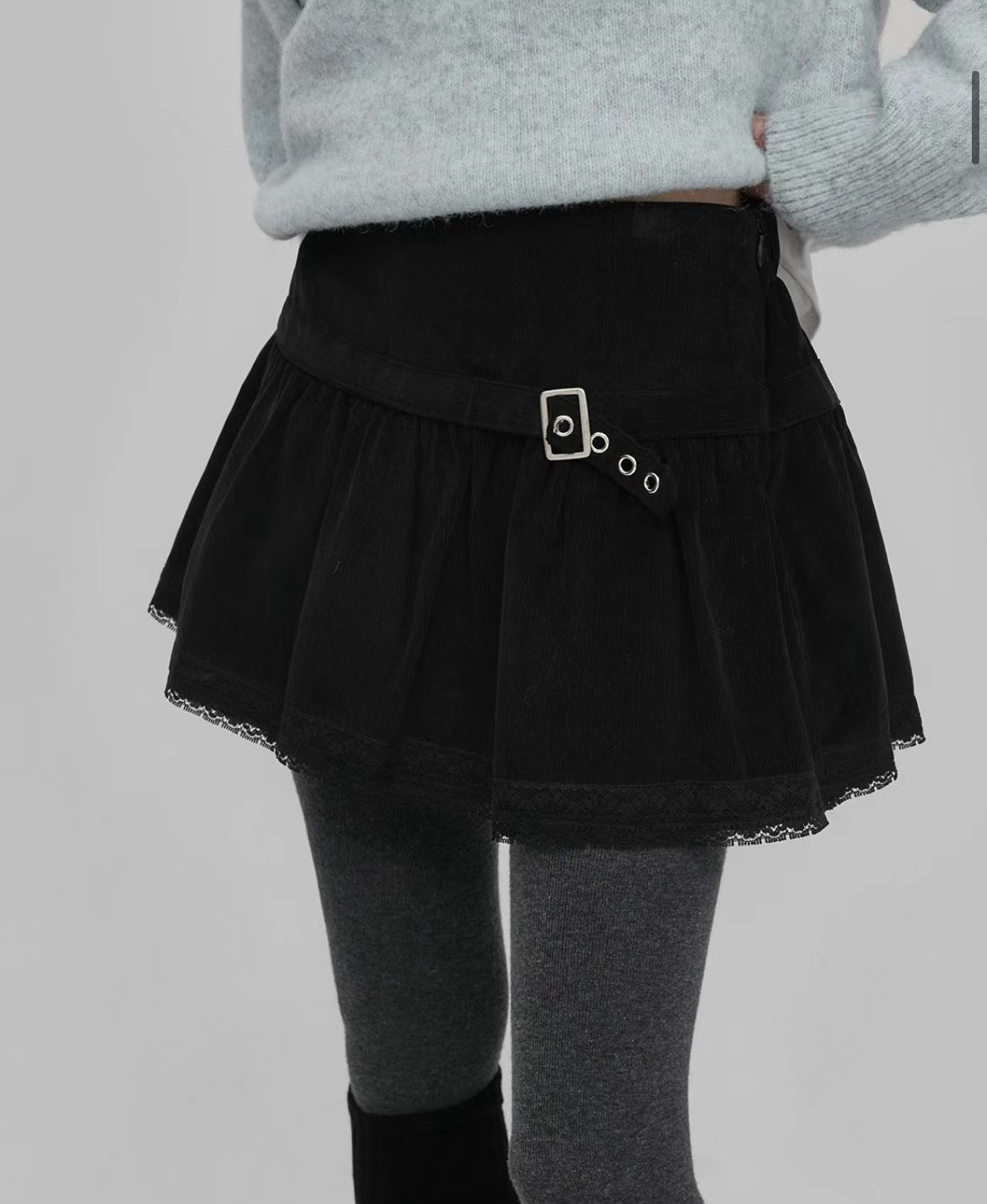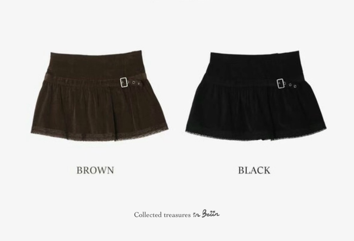 百變甜心🖤*☽:゚腰帶蕾絲拼接鬆緊褲裙(2colors)